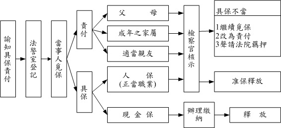 - 具保人辦妥保證或受責付人辦妥責付手續後,立即將被告釋放。